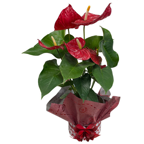 • Ornamental: Su principal uso es como planta ornamental de interior, gracias a sus atractivas brácteas que pueden durar semanas o incluso meses. Es perfecta para decorar salas, oficinas, baños (si tienen buena luz) y cualquier espacio que necesite un toque de color y sofisticación.