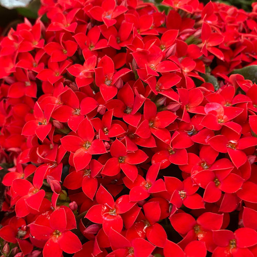 Kalanchoe blossfeldiana, comúnmente conocida simplemente como Kalanchoe o Planta de la Flor de Navidad/Invierno, es una suculenta muy popular, especialmente valorada por su abundante y prolongada floración. Sus pequeñas flores, que crecen en densos racimos, vienen en una amplia gama de colores vibrantes como rojo, naranja, rosa, amarillo y blanco. Es una planta de día corto, lo que significa que florece en respuesta a períodos más largos de oscuridad, siendo muy común verla florecer en invierno y primavera.