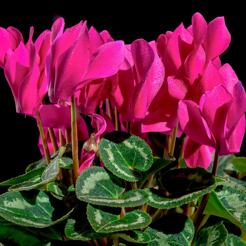 El Cyclamen (Cyclamen persicum), también conocido como Violeta persa o simplemente Ciclamen, es una hermosa planta con flores, muy popular en invierno y principios de primavera. Es apreciada por sus delicadas flores en forma de mariposa que se elevan sobre sus hojas en forma de corazón, a menudo veteadas con patrones plateados. Es una planta bulbosa que entra en un período de dormancia durante los meses más cálidos.